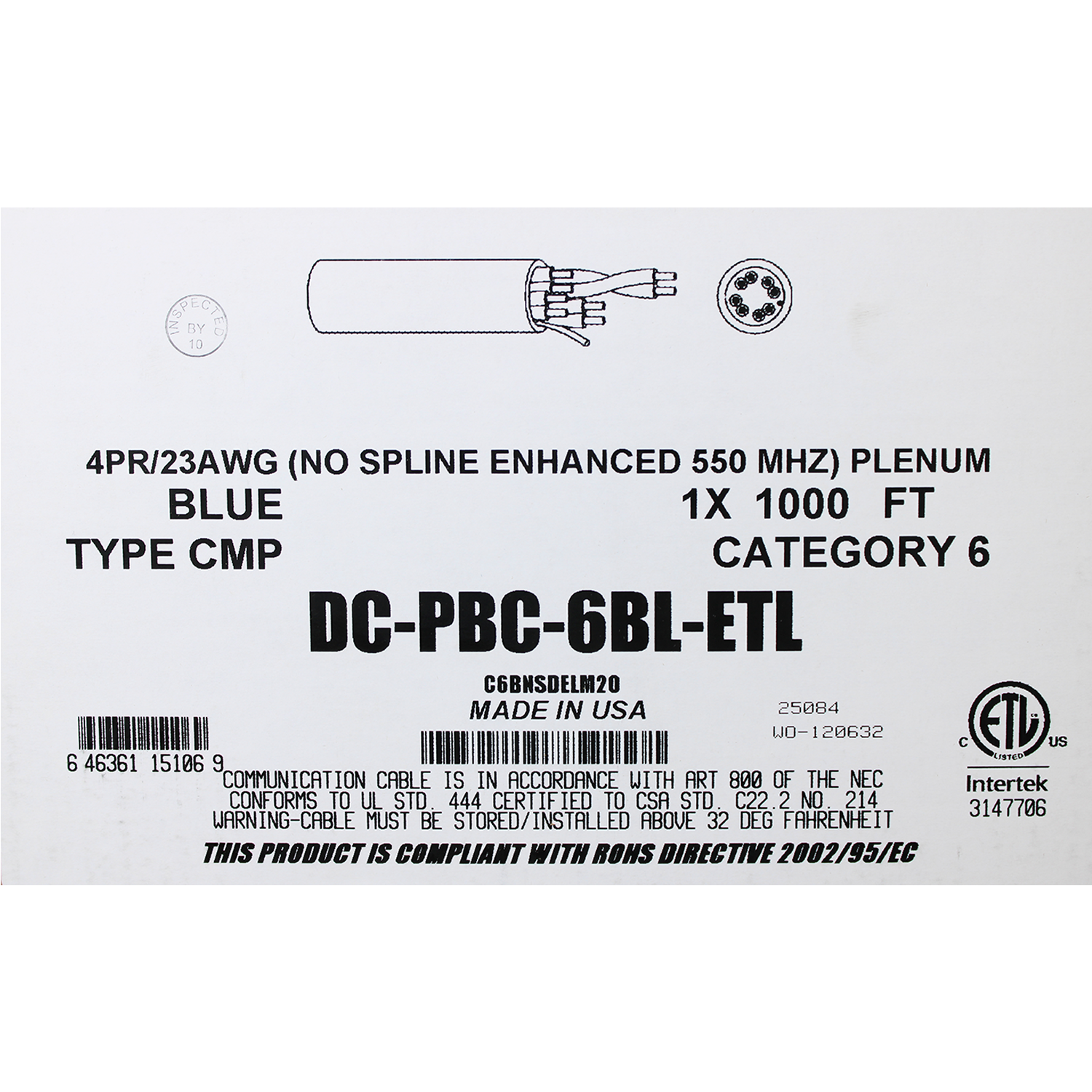 U.S. Made Cat6 UTP Plenum Rated, Pure Copper, 550mhz , ETL Listed
